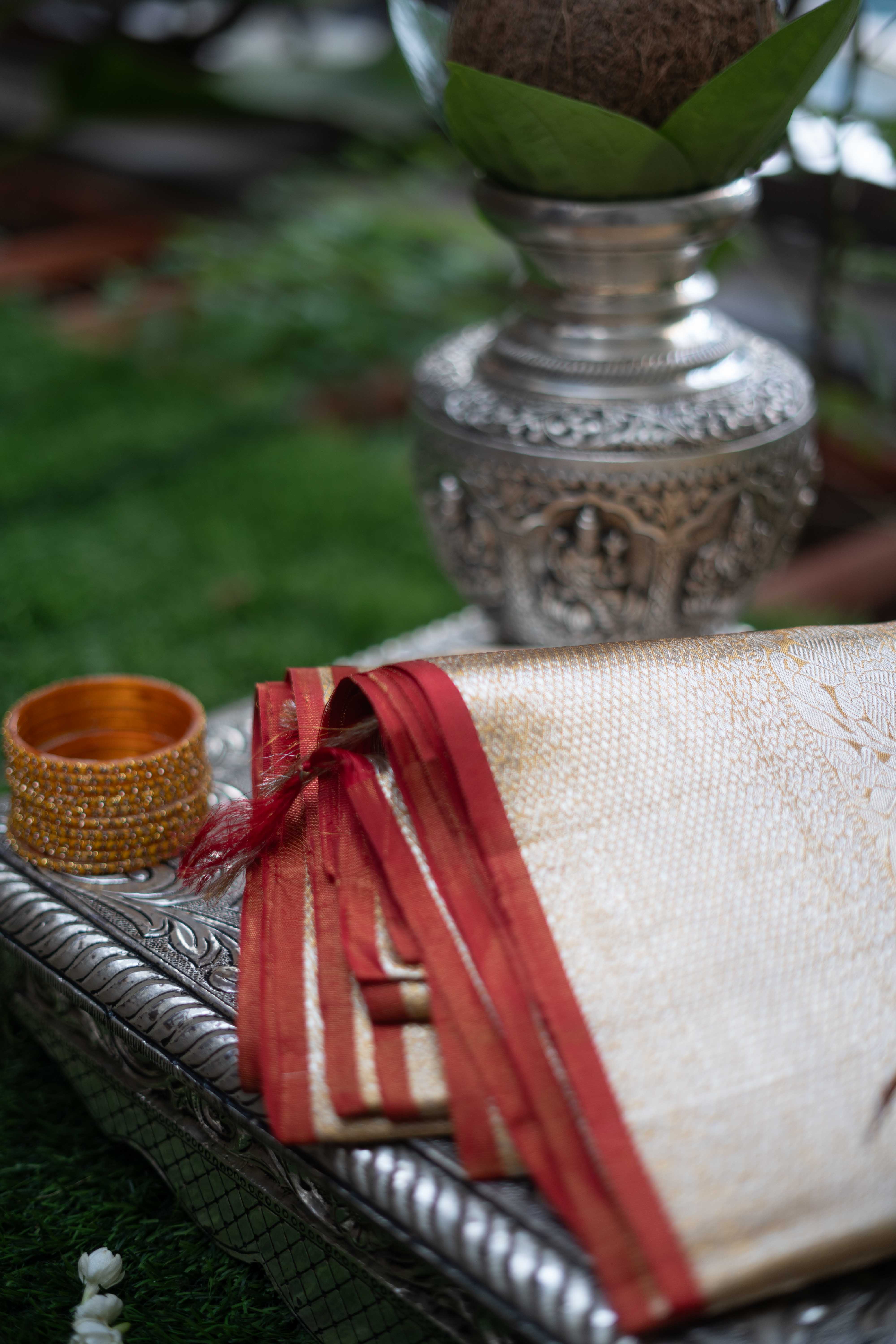 Design: Intricate Gold Zari Weaving with Traditional Motifs