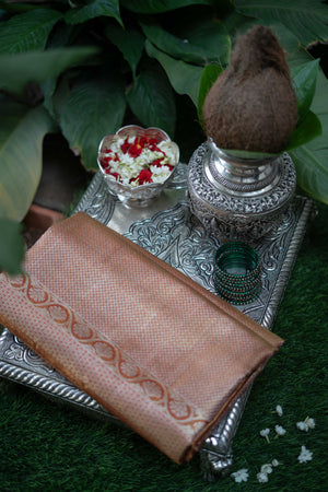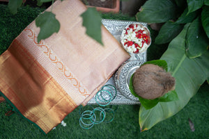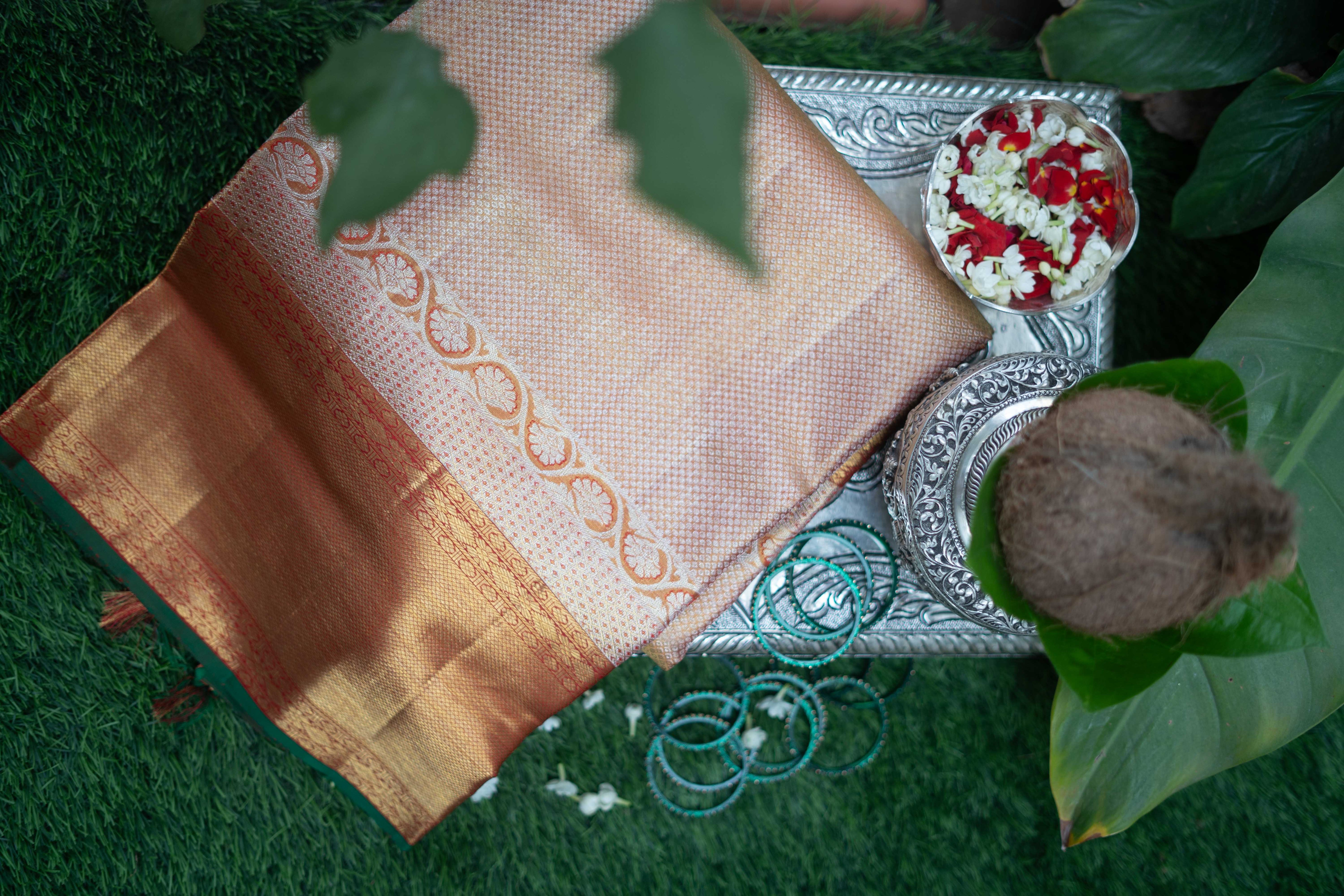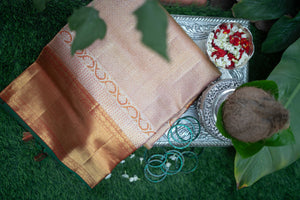 Premium Pink with red and green Bordered Kanchipuram silk saree.
