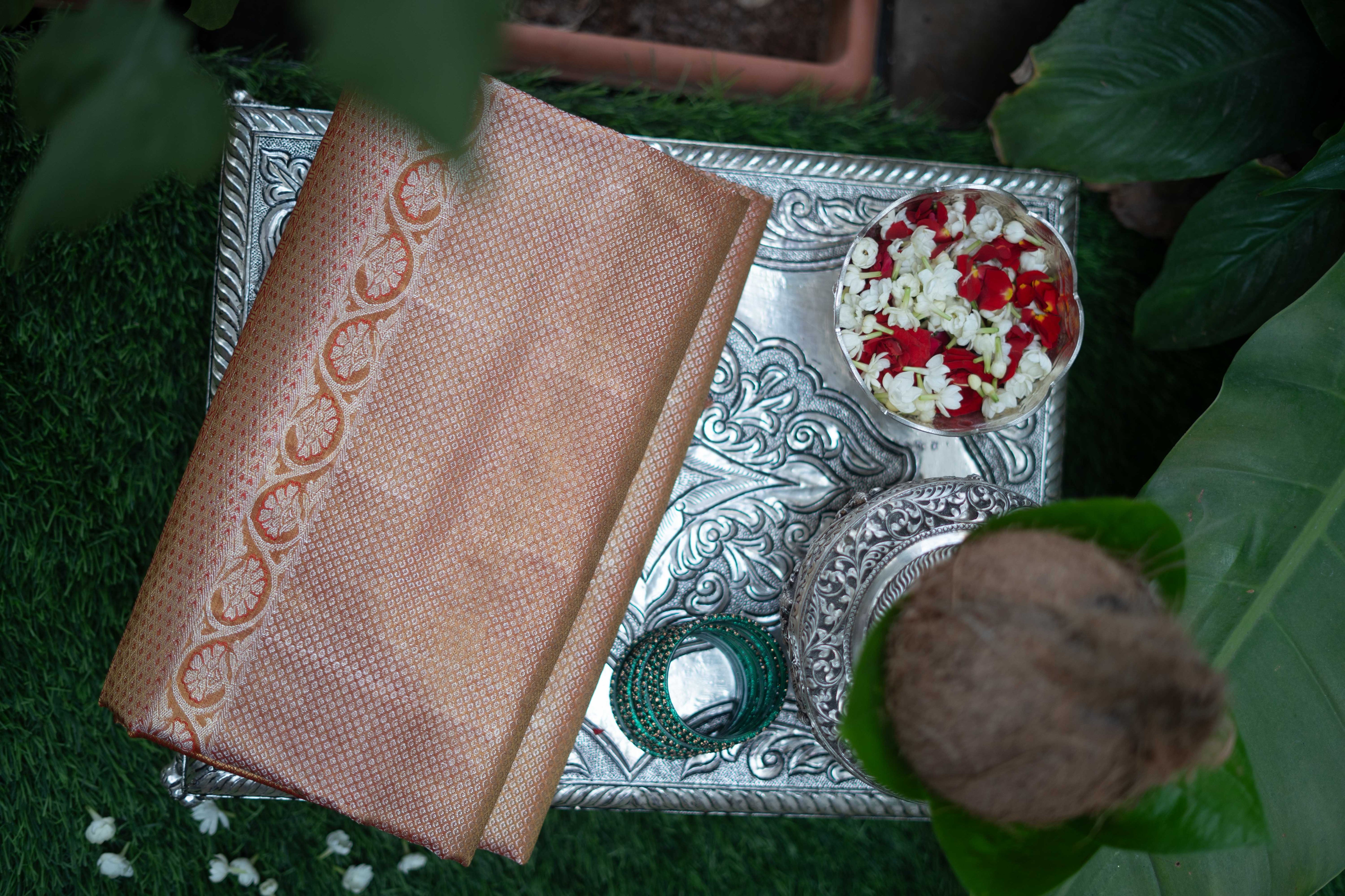 Pure Kanchivaram Saree - Gold With Red And Green Border