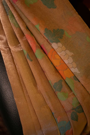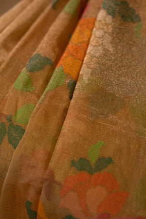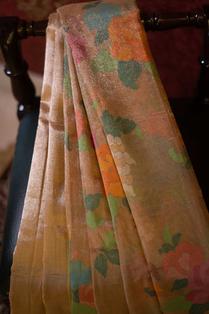 PREMIUM PURE SILVER AND GOLD ZARI ZAMDANI WITH FLORAL PRINT
