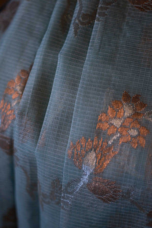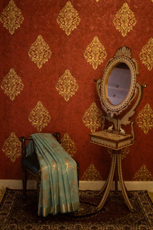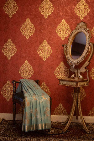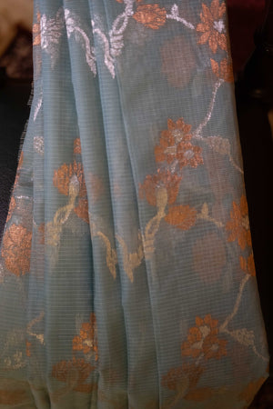 Premium Aqua blue pure zari Kota Doria silk saree with a timeless charm.