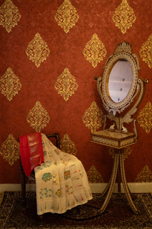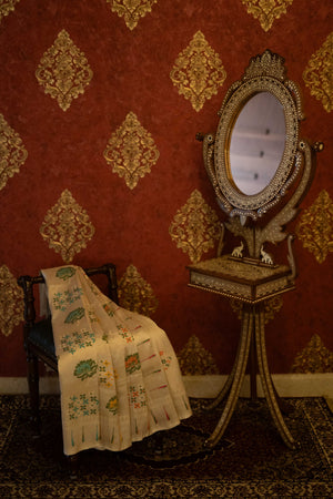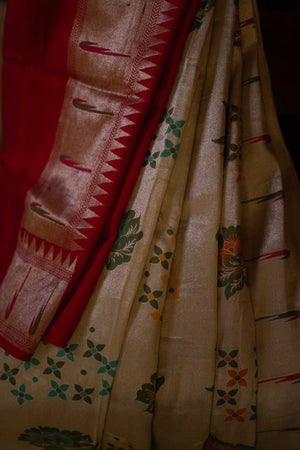 Ivory pure Tussar Georgette saree with a soft, elegant drape.