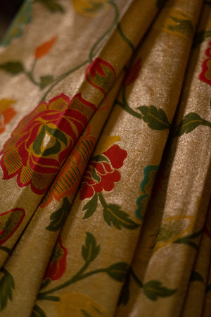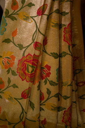 Yellow Tussar Georgette saree with a soft, elegant drape