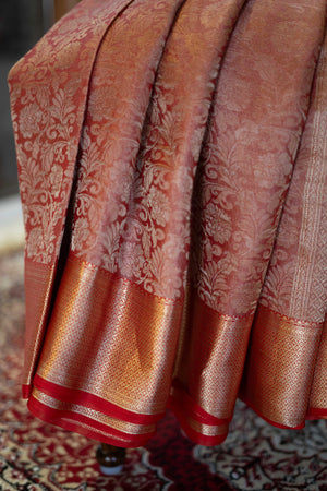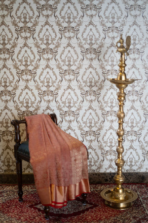 Pure Kanchipuram Silk Saree - Pink With Red Border