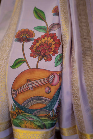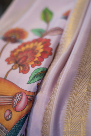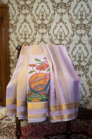 PURE MYSORE CREPE LAVENDER SILK SAREE WITH GOLD ZARI