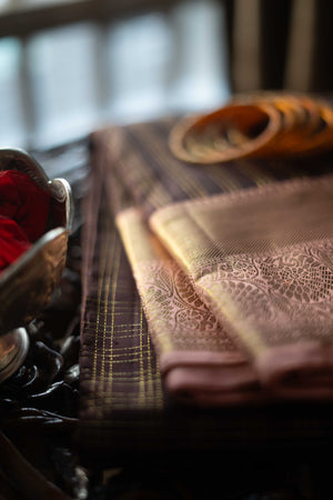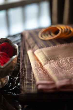 Pure Kanchipuram Silk Saree - Brown With Peach Border