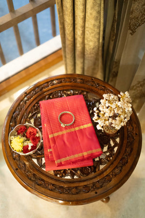 Pure Kanchipuram Silk Saree - Dark Pink And Red Mix