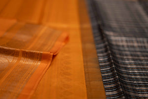 | Craft: Zari woven | Colour: Orange | Border: Gold |