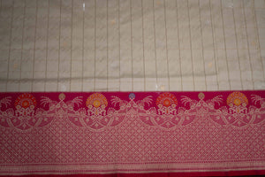 Ivory Banarasi silk saree with zari patterns