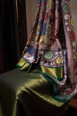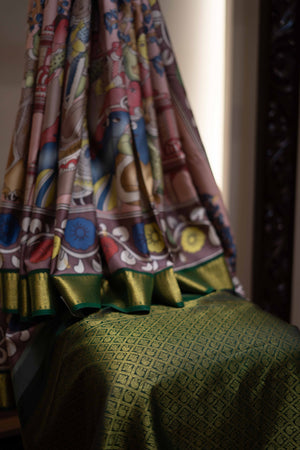 | Craft: Kanchipuram crepe silk | Colour: Maroon and green | Border: Gold |