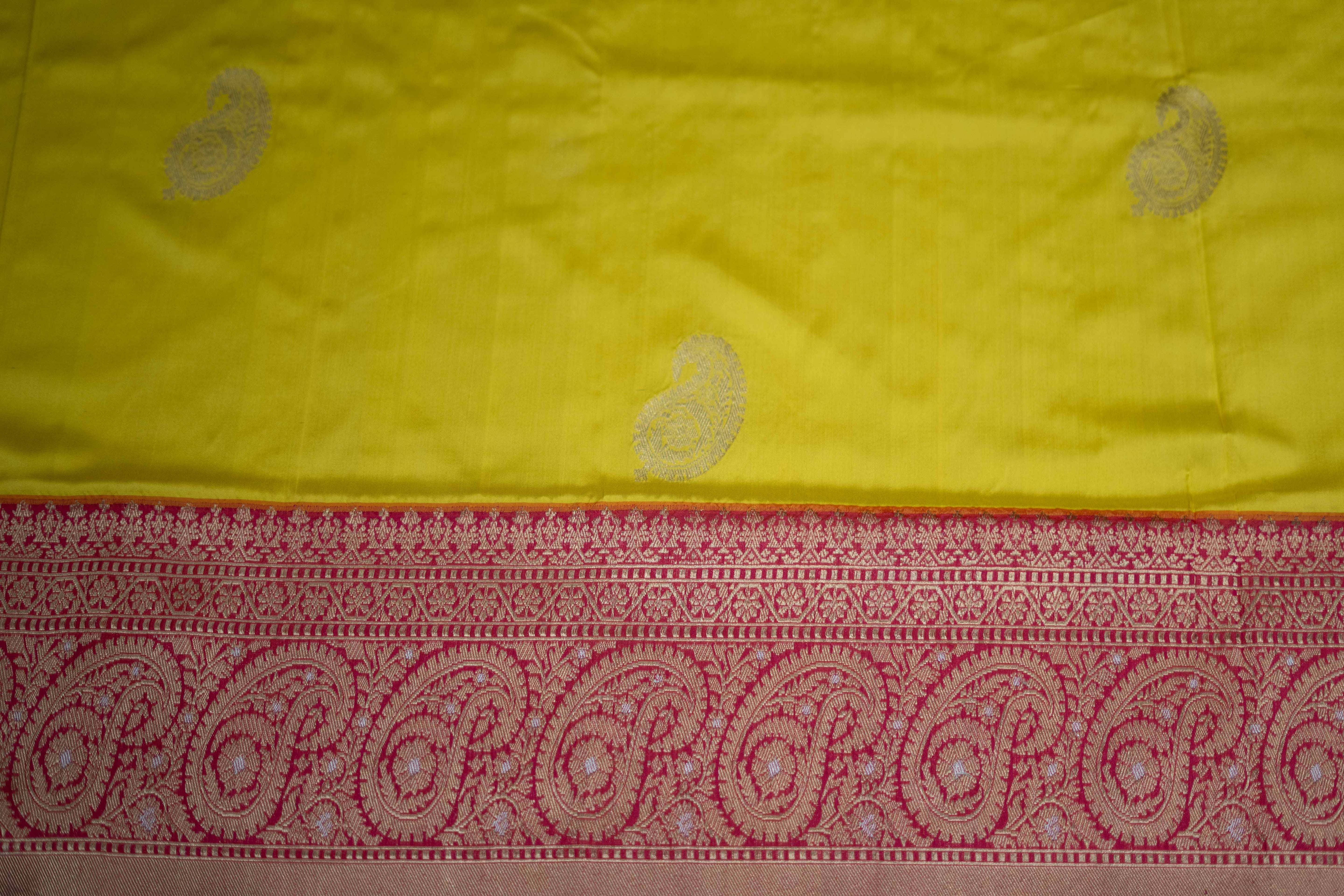 Yellow Banarasi silk saree